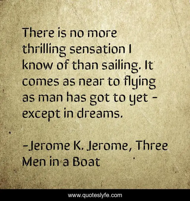 This page presents the quote "There is no more thrilling sensation I know of than sailing. It comes as near to flying as man has got to yet - except in dreams.". Author of this quote is Jerome K. Jerome, Three Men in a Boat. This quote is about humour, sailing,.