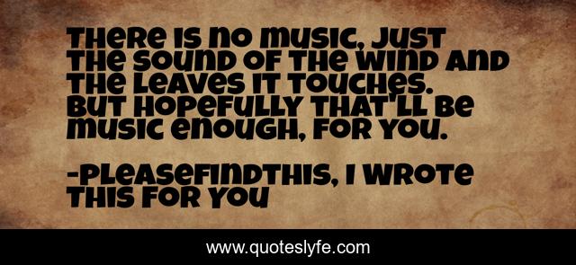 This page presents the quote "There is no music, just the sound of the wind and the leaves it touches. But hopefully that'll be music enough, for you.". Author of this quote is pleasefindthis, I Wrote This For You. This quote is about love, music, affection,.