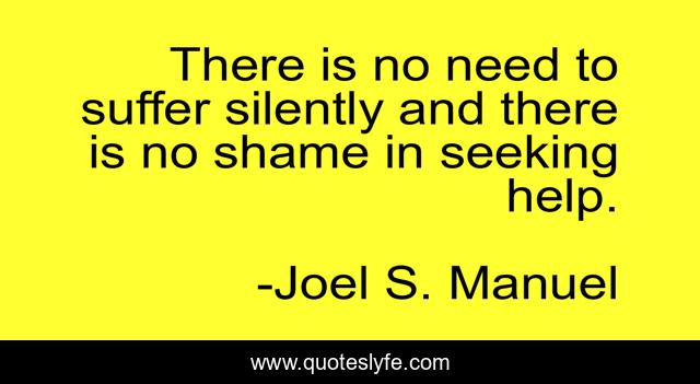 This page presents the quote "There is no need to suffer silently and there is no shame in seeking help.". Author of this quote is Joel S. Manuel. This quote is about emotion, life, help, science, inspirational, suffering, truth, enthusiasm, thoughts,.