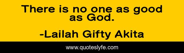 This page presents the quote "There is no one as good as God.". Author of this quote is Lailah Gifty Akita. This quote is about god, wise-words, good, deeds,.
