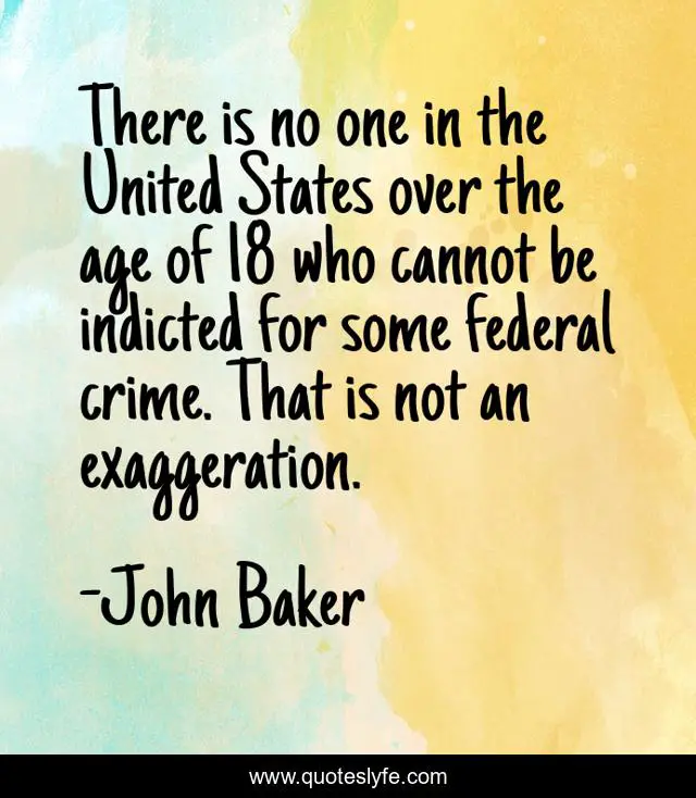 This page presents the quote "There is no one in the United States over the age of 18 who cannot be indicted for some federal crime. That is not an exaggeration.". Author of this quote is John Baker. This quote is about criminal-justice-system, united-states-of-america, law, 2011, federal-government,.