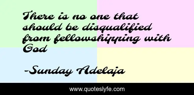 This page presents the quote "There is no one that should be disqualified from fellowshipping with God". Author of this quote is Sunday Adelaja. This quote is about love, people, money, principles, worship, destiny, god, nature-of-god, image-of-god,.