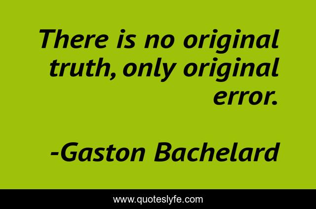 This page presents the quote "There is no original truth, only original error.". Author of this quote is Gaston Bachelard. This quote is about only, original, error,.