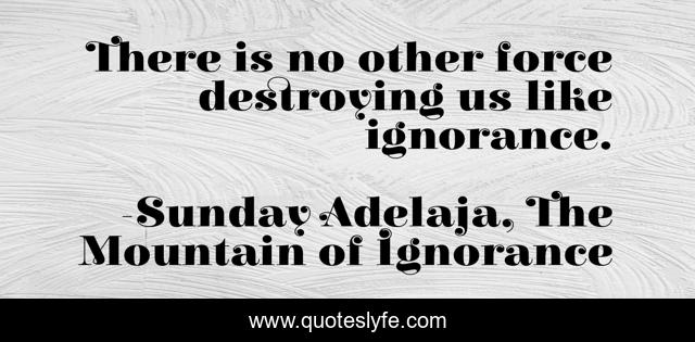 This page presents the quote "There is no other force destroying us like ignorance.". Author of this quote is Sunday Adelaja, The Mountain of Ignorance. This quote is about mountain, life, force, darkness, power, danger, god, people, ignorance,.