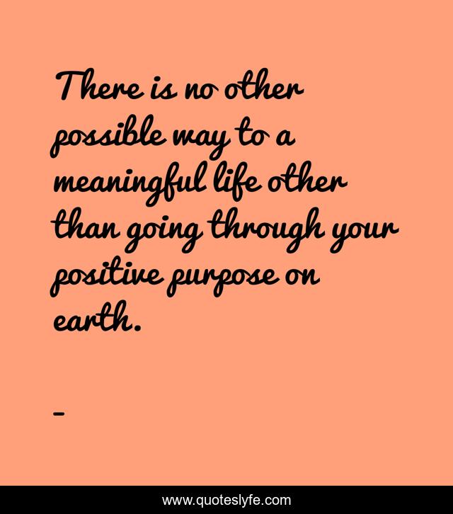 This page presents the quote "There is no other possible way to a meaningful life other than going through your positive purpose on earth.". Author of this quote is . This quote is about edmond-mbiaka, a-meaningful-life, your-positive-purpose-in-life, living-a-very-meaningful-life, your-positive-purpose-on-earth,.