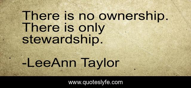 This page presents the quote "There is no ownership. There is only stewardship.". Author of this quote is LeeAnn Taylor. This quote is about belonging, woman, service, people, humanity, life, accountability, spirituality, responsibility,.