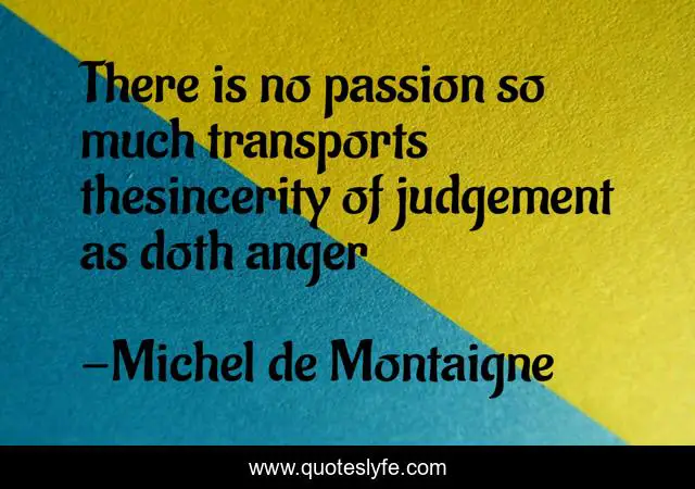 This page presents the quote "There is no passion so much transports thesincerity of judgement as doth anger". Author of this quote is Michel de Montaigne. .