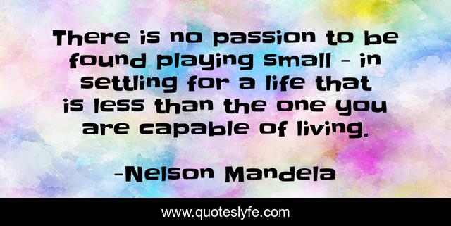 This page presents the quote "There is no passion to be found playing small - in settling for a life that is less than the one you are capable of living.". Author of this quote is Nelson Mandela. This quote is about enthusiasm, inspirational,.