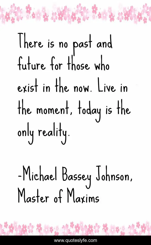 "Michael Bassey Johnson, Master of Maxims Quotes." Quoteslyfe.com, 2025. Sun. 07 Dec. 2025. <https://www.quoteslyfe.com/quote/There-is-no-past-and-future-for-93765>.