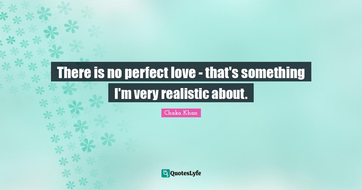 This page presents the quote "There is no perfect love - that's something I'm very realistic about.". Author of this quote is Chaka Khan. This quote is about perfect, perfect love, realistic,.
