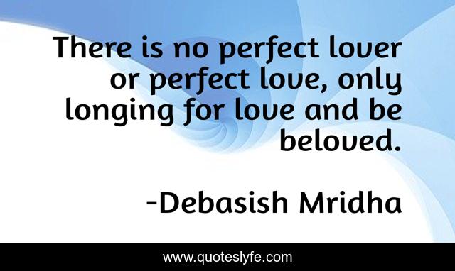 This page presents the quote "There is no perfect lover or perfect love, only longing for love and be beloved.". Author of this quote is Debasish Mridha. This quote is about life, love, knowledge, inspirational, intelligence, philosophy, wisdom, quotes, affection,.