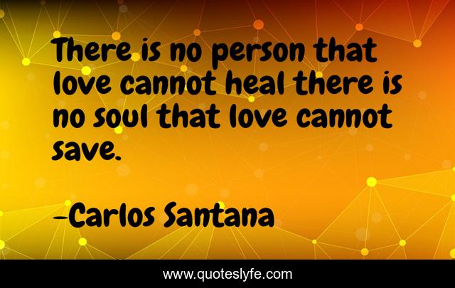 This page presents the quote "There is no person that love cannot heal there is no soul that love cannot save.". Author of this quote is Carlos Santana. This quote is about person, heal, soul,.