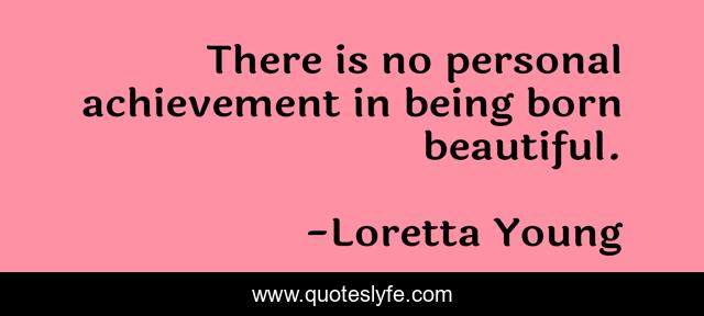 This page presents the quote "There is no personal achievement in being born beautiful.". Author of this quote is Loretta Young. This quote is about beautiful, born, achievement,.