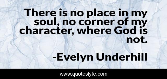 This page presents the quote "There is no place in my soul, no corner of my character, where God is not.". Author of this quote is Evelyn Underhill. This quote is about character, place, soul,.