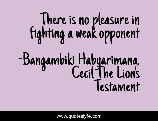 This page presents the quote "There is no pleasure in fighting a weak opponent". Author of this quote is Bangambiki Habyarimana, Cecil The Lion's Testament. .