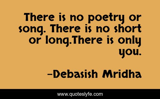 This page presents the quote "There is no poetry or song. There is no short or long.There is only you.". Author of this quote is Debasish Mridha. This quote is about life, love, knowledge, inspirational, intelligence, philosophy, wisdom, quotes, affection,.
