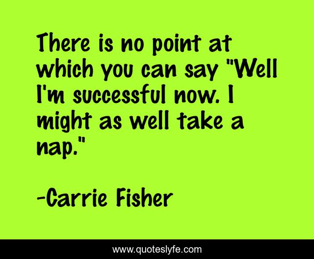 This page presents the quote "There is no point at which you can say "Well I'm successful now. I might as well take a nap."". Author of this quote is Carrie Fisher. .