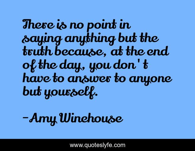 This page presents the quote "There is no point in saying anything but the truth because, at the end of the day, you don't have to answer to anyone but yourself.". Author of this quote is Amy Winehouse. .