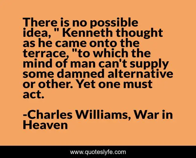 This page presents the quote "There is no possible idea, " Kenneth thought as he came onto the terrace, "to which the mind of man can't supply some damned alternative or other. Yet one must act.". Author of this quote is Charles Williams, War in Heaven. .