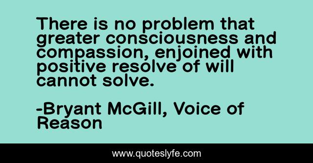 This page presents the quote "There is no problem that greater consciousness and compassion, enjoined with positive resolve of will cannot solve.". Author of this quote is Bryant McGill, Voice of Reason. This quote is about compassion, positive, confidence, hope,.
