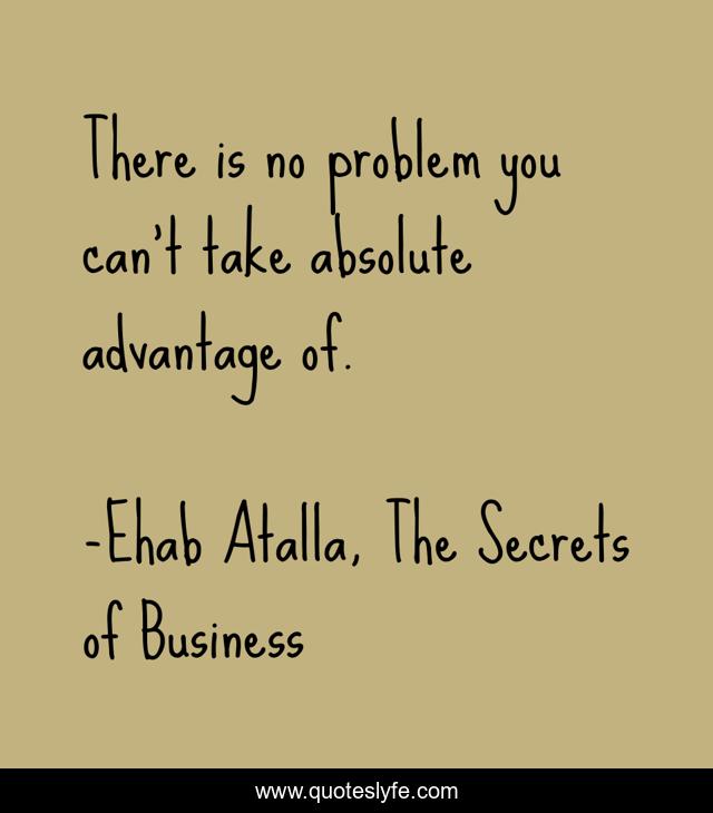This page presents the quote "There is no problem you can't take absolute advantage of.". Author of this quote is Ehab Atalla, The Secrets of Business. This quote is about skills, entrepreneurship, business, self-help,.