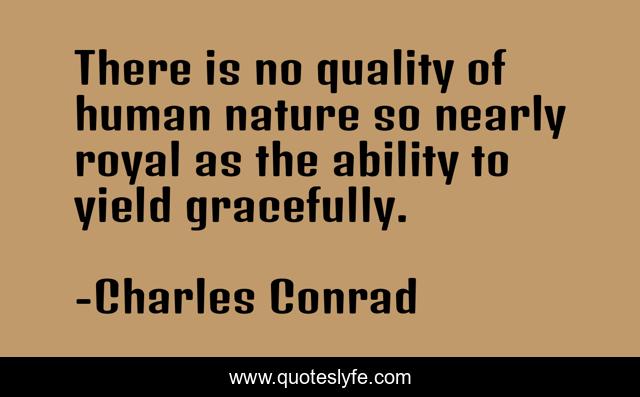 This page presents the quote "There is no quality of human nature so nearly royal as the ability to yield gracefully.". Author of this quote is Charles Conrad. .