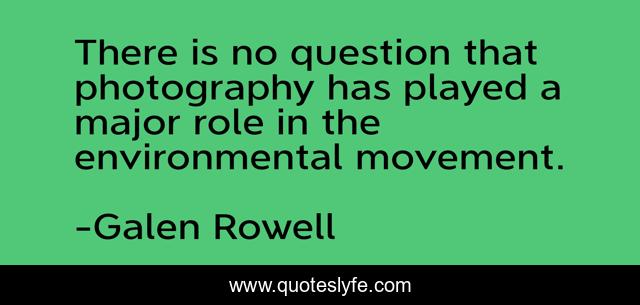 This page presents the quote "There is no question that photography has played a major role in the environmental movement.". Author of this quote is Galen Rowell. This quote is about photography, question,.