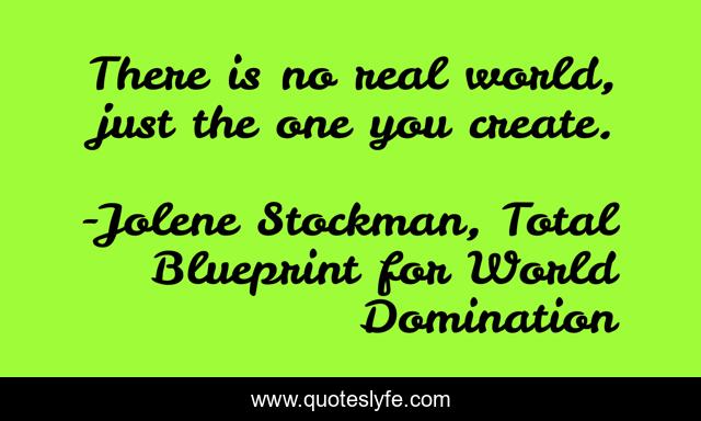 "Jolene Stockman, Total Blueprint for World Domination Quotes." Quoteslyfe.com, 2025. Sat. 06 Dec. 2025. <https://www.quoteslyfe.com/quote/There-is-no-real-world-just-the-36116>.