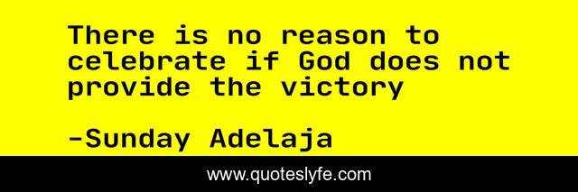 This page presents the quote "There is no reason to celebrate if God does not provide the victory". Author of this quote is Sunday Adelaja. This quote is about provide, god, reason, victory, celebrate,.