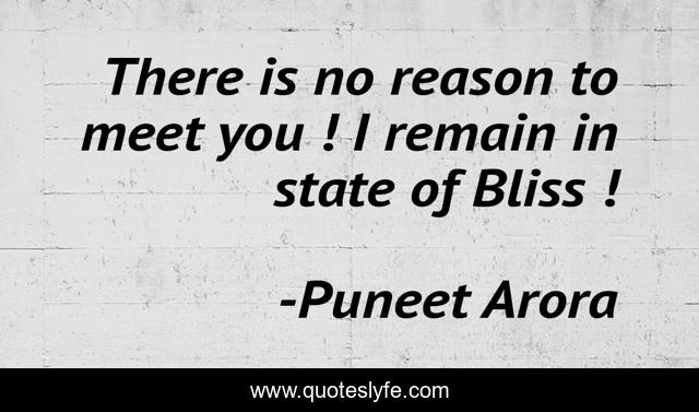 This page presents the quote "There is no reason to meet you ! I remain in state of Bliss !". Author of this quote is Puneet Arora. This quote is about breakup, blissful, love, affection,.