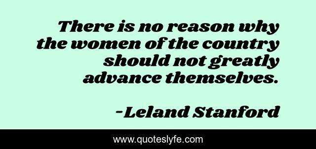 This page presents the quote "There is no reason why the women of the country should not greatly advance themselves.". Author of this quote is Leland Stanford. This quote is about country, reason, why,.
