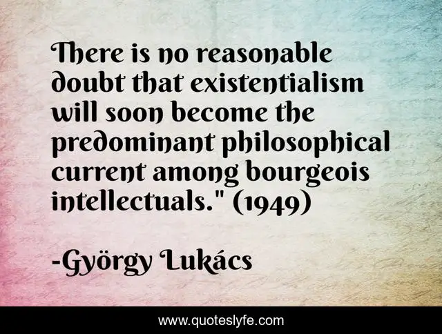 This page presents the quote "There is no reasonable doubt that existentialism will soon become the predominant philosophical current among bourgeois intellectuals." (1949)". Author of this quote is György Lukács. .