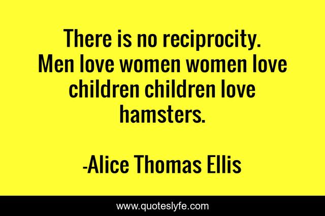 This page presents the quote "There is no reciprocity. Men love women women love children children love hamsters.". Author of this quote is Alice Thomas Ellis. .
