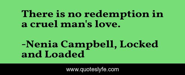 This page presents the quote "There is no redemption in a cruel man's love.". Author of this quote is Nenia Campbell, Locked and Loaded. This quote is about love, cruelty, affection,.