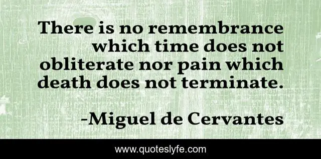 This page presents the quote "There is no remembrance which time does not obliterate nor pain which death does not terminate.". Author of this quote is Miguel de Cervantes. .
