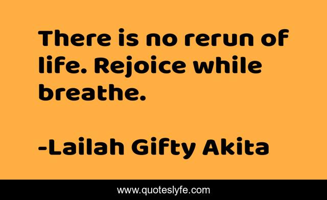 This page presents the quote "There is no rerun of life. Rejoice while breathe.". Author of this quote is Lailah Gifty Akita. This quote is about wisdom-of-lailah-gifty-akita, life, rejoice, self-love, wise-words,.