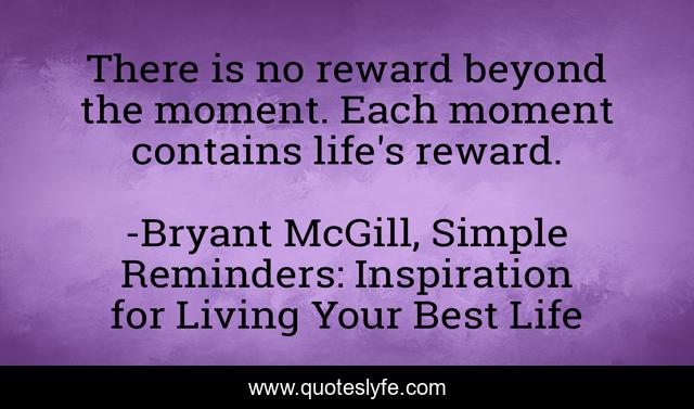 "Bryant McGill, Simple Reminders: Inspiration for Living Your Best Life Quotes." Quoteslyfe.com, 2025. Mon. 08 Dec. 2025. <https://www.quoteslyfe.com/quote/There-is-no-reward-beyond-the-moment-198658>.