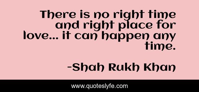 This page presents the quote "There is no right time and right place for love... it can happen any time.". Author of this quote is Shah Rukh Khan. This quote is about love, place, affection, right time,.