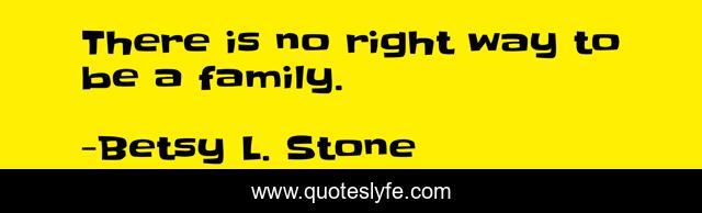 This page presents the quote "There is no right way to be a family.". Author of this quote is Betsy L. Stone. This quote is about family-relationships, family,.
