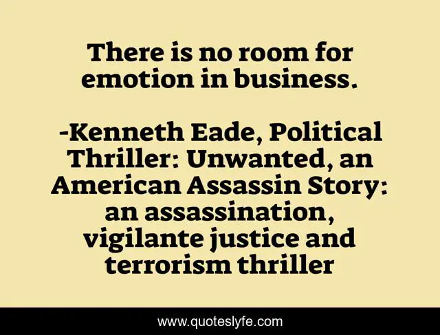 This page presents the quote "There is no room for emotion in business.". Author of this quote is Kenneth Eade, Political Thriller: Unwanted, an American Assassin Story: an assassination, vigilante justice and terrorism thriller. This quote is about emotion, business,.