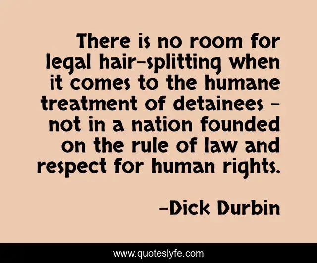 This page presents the quote "There is no room for legal hair-splitting when it comes to the humane treatment of detainees - not in a nation founded on the rule of law and respect for human rights.". Author of this quote is Dick Durbin. This quote is about respect, law, rights,.