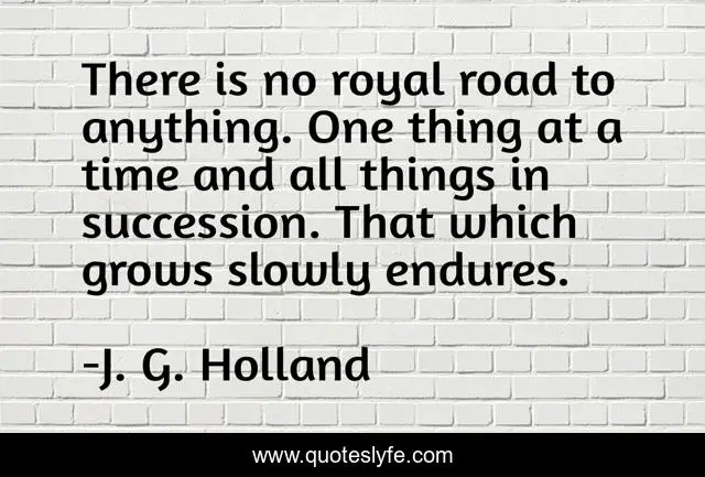 This page presents the quote "There is no royal road to anything. One thing at a time and all things in succession. That which grows slowly endures.". Author of this quote is J. G. Holland. .