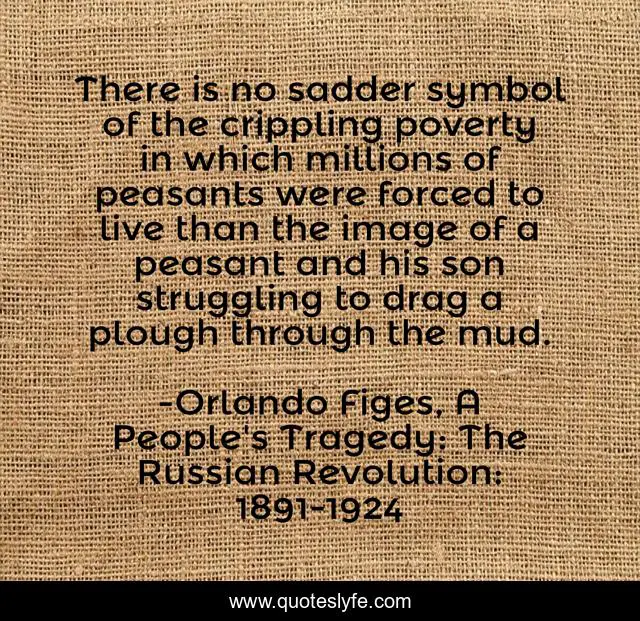 This page presents the quote "There is no sadder symbol of the crippling poverty in which millions of peasants were forced to live than the image of a peasant and his son struggling to drag a plough through the mud.". Author of this quote is Orlando Figes, A People's Tragedy: The Russian Revolution: 1891-1924. This quote is about poverty, russia, ploughing, peasants,.