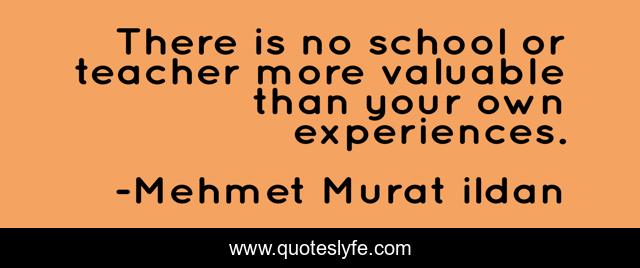 This page presents the quote "There is no school or teacher more valuable than your own experiences.". Author of this quote is Mehmet Murat ildan. This quote is about school, experiences, mehmet-murat-ildan, experience, teacher,.