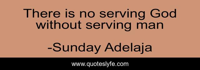 This page presents the quote "There is no serving God without serving man". Author of this quote is Sunday Adelaja. This quote is about kingdom, life, love, destiny, serving-god, people, money, god, work,.