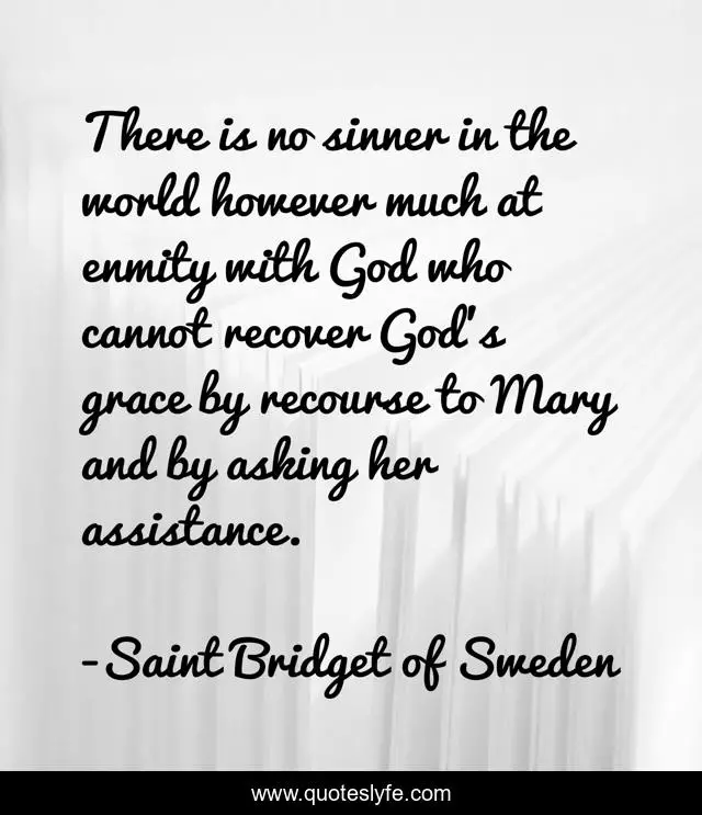 This page presents the quote "There is no sinner in the world however much at enmity with God who cannot recover God's grace by recourse to Mary and by asking her assistance.". Author of this quote is Saint Bridget of Sweden. .