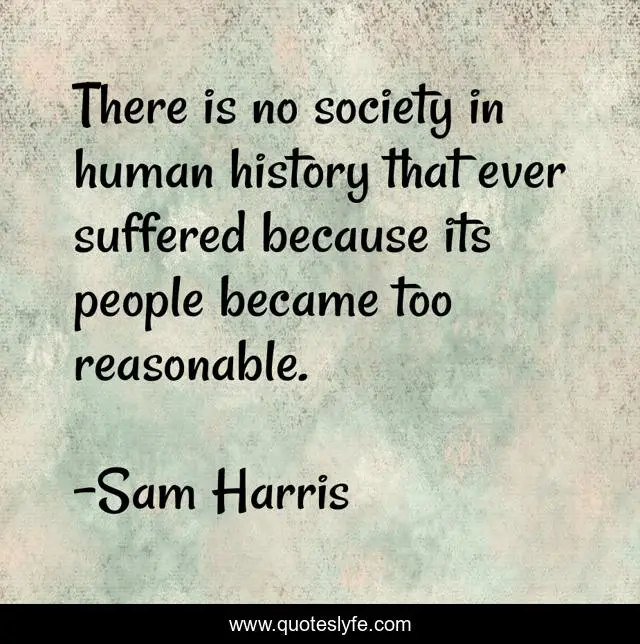 This page presents the quote "There is no society in human history that ever suffered because its people became too reasonable.". Author of this quote is Sam Harris. This quote is about atheism, religion, reason, reasoning, reasonable,.