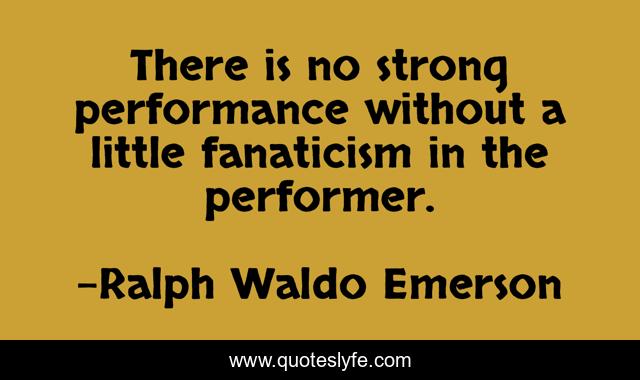 This page presents the quote "There is no strong performance without a little fanaticism in the performer.". Author of this quote is Ralph Waldo Emerson. This quote is about commitment, belief,.