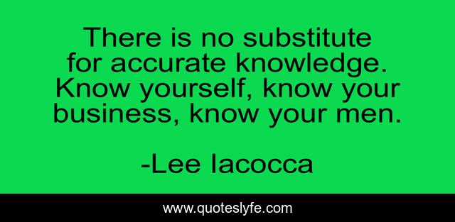 This page presents the quote "There is no substitute for accurate knowledge. Know yourself, know your business, know your men.". Author of this quote is Lee Iacocca. This quote is about men, knowledge, yourself,.