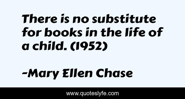 This page presents the quote "There is no substitute for books in the life of a child. (1952)". Author of this quote is Mary Ellen Chase. .